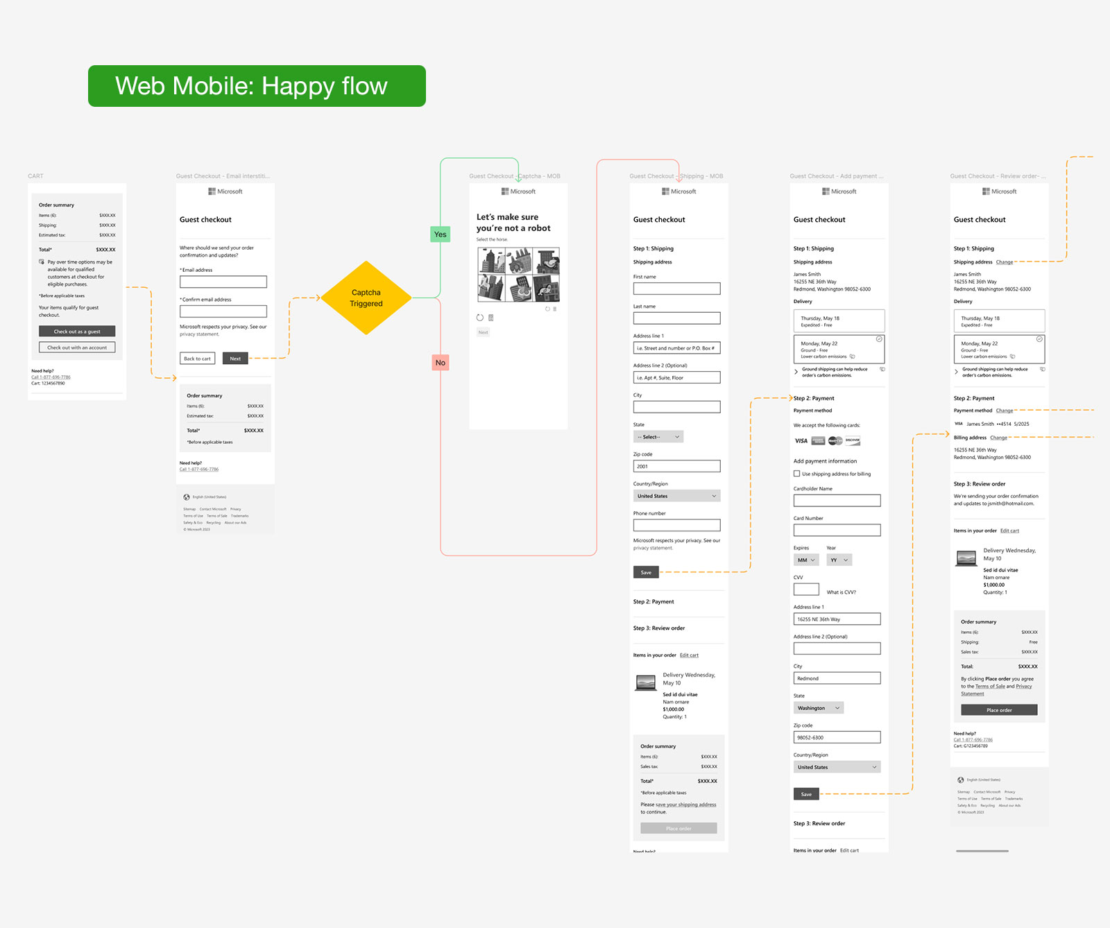 Competitive analysis was done to review some best practices and optimal flows. I took into account the slight differences in user journeys between account holders and guest users and optimized the flow and checkout forms.